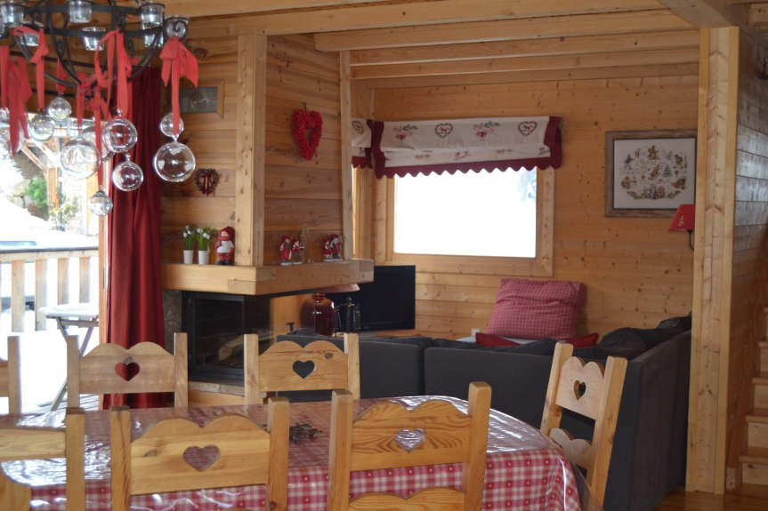 Grand Chalet bois (livré décembre 2006)avec vue panoramique sur les massifs environnant, très chaleureux, dèco soignée, à 400M des pistes et 500M de tous commerces.Coin salon avec cheminée,TV, centrale aspiration, sèche chaussure ski.Animaux non admis. Chalet strictement non fumeur.