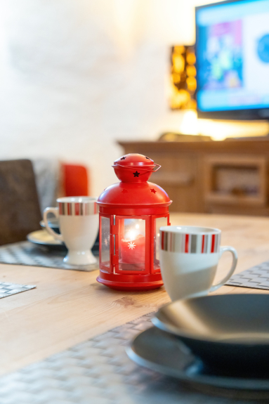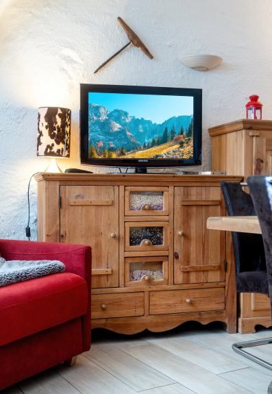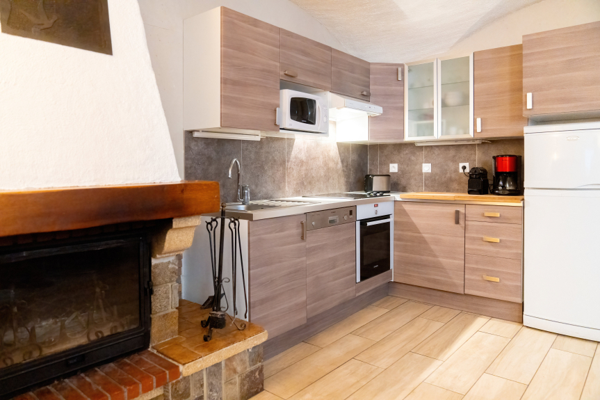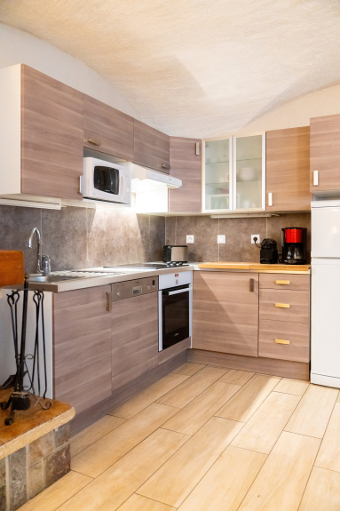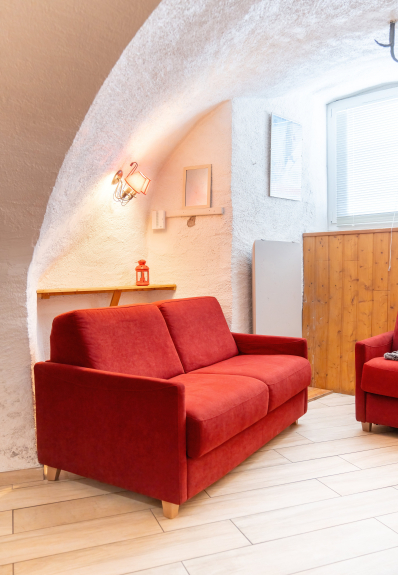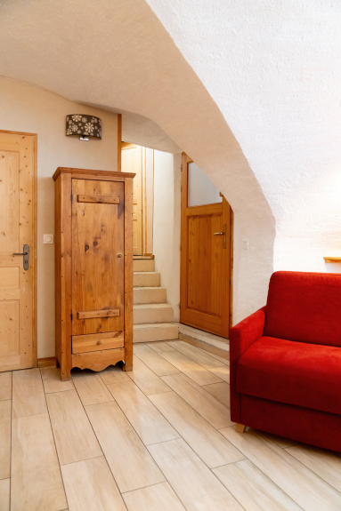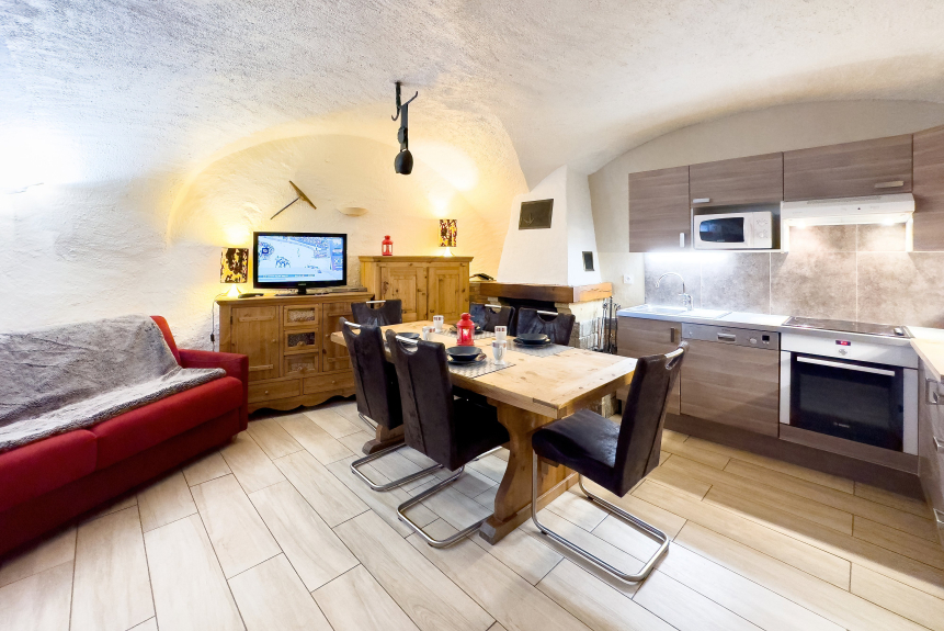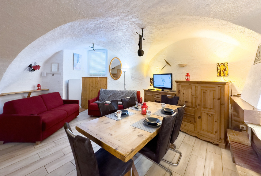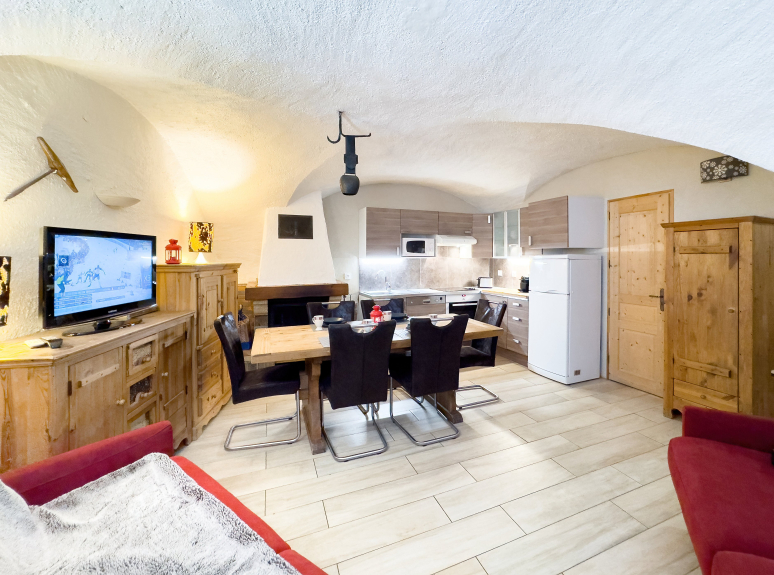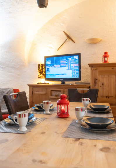 In een dorpshuis, op de begane grond, een zeer mooi gemeubileerd appartement met veel comfort, volledig gerenoveerd: gewelfde kamer met open haard, 2 slaapkamers, badkamer en aparte WC...WI-FI FIBRE
