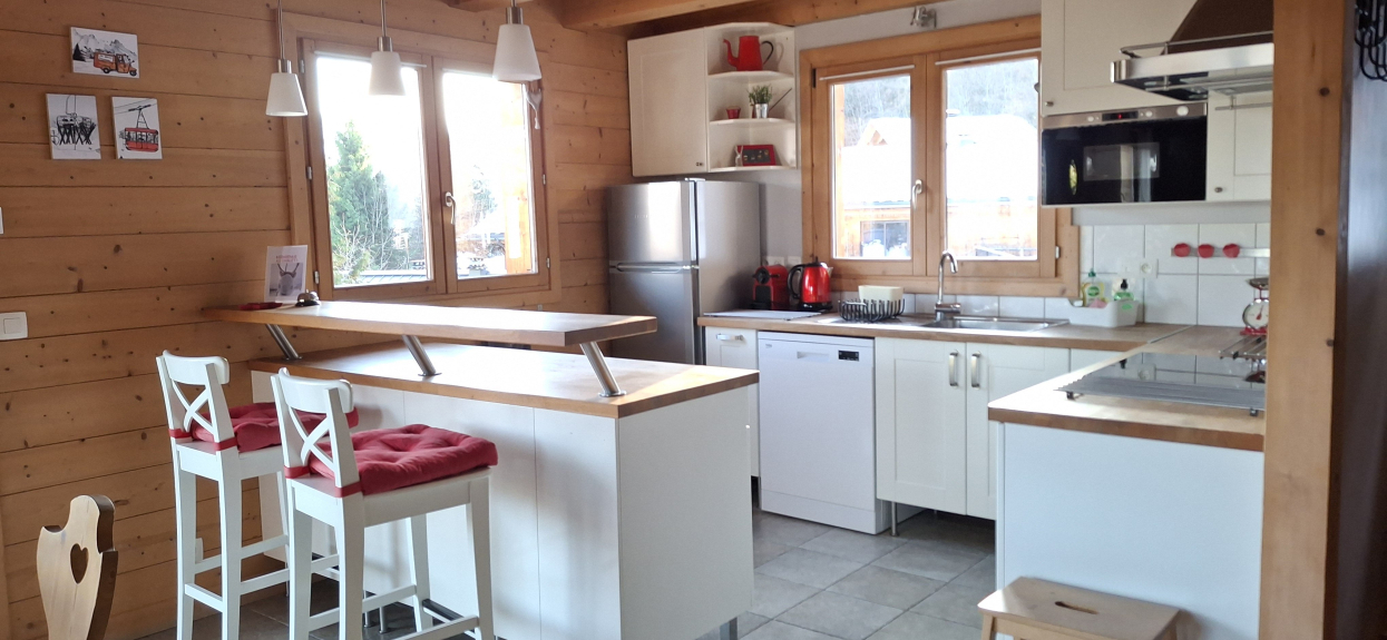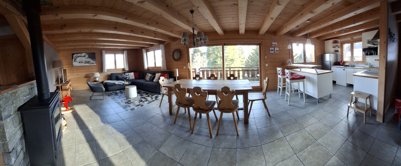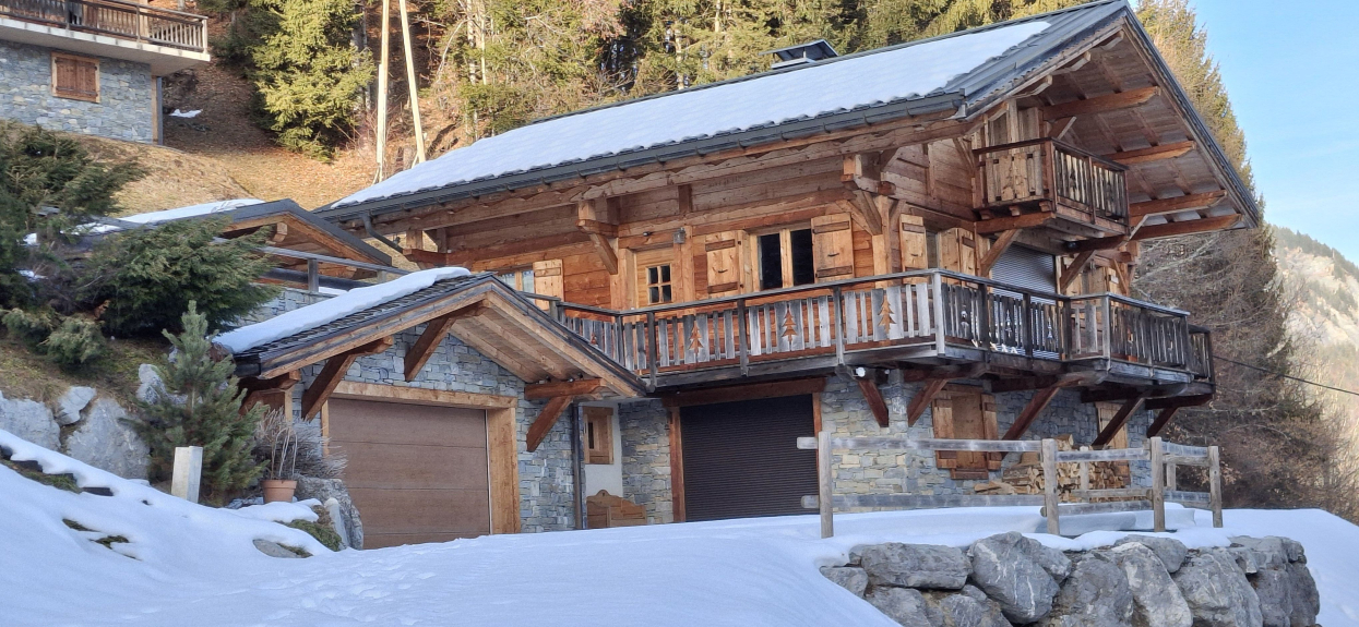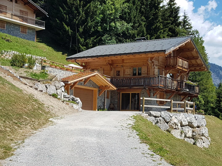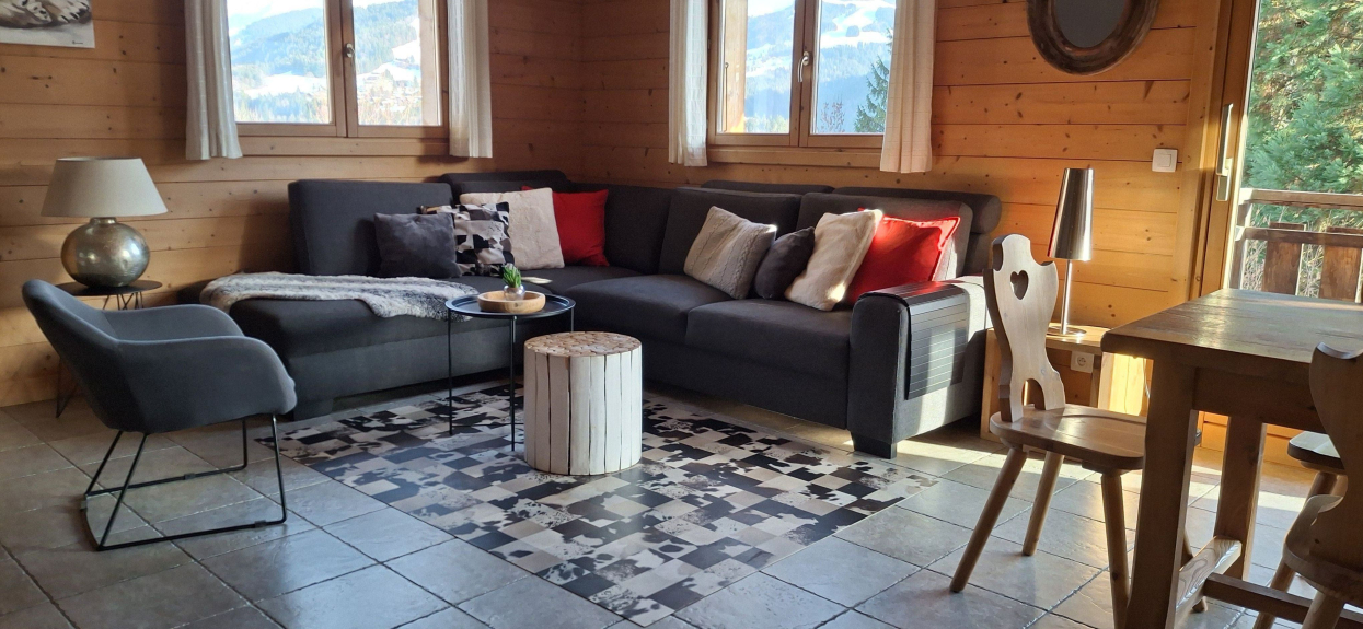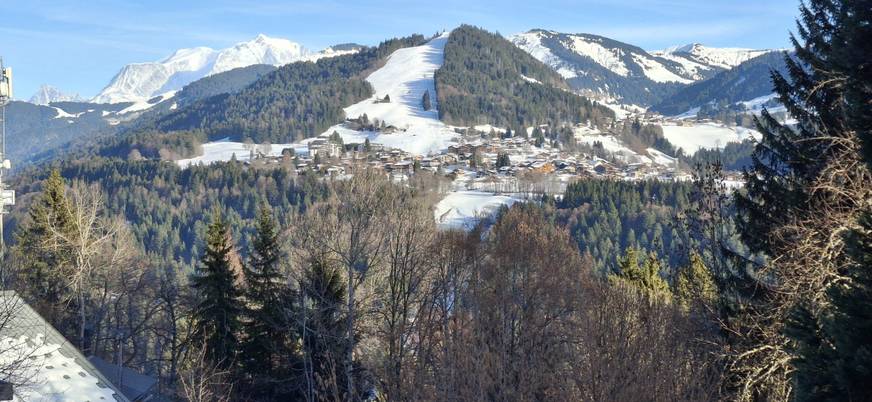 Zeer zonnig (zuidligging), met uitzicht op de Mont Blanc en de Megeve vallei.