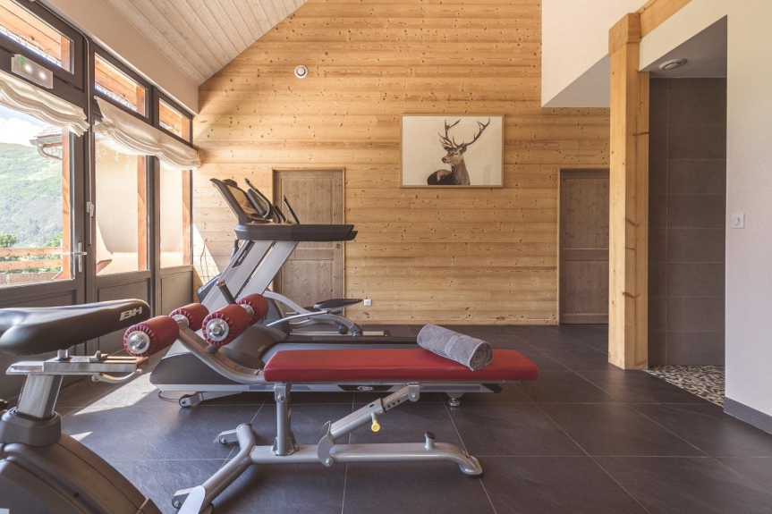 Het woongedeelte bestaat uit een volledig uitgeruste open keuken, een eethoek voor maximaal 14 personen en een gezellige tv-lounge met een houtkachel. Dit niveau wordt gecompleteerd door een privé-sauna met douche en fitnessapparatuur, een wasruimte en een toilet.