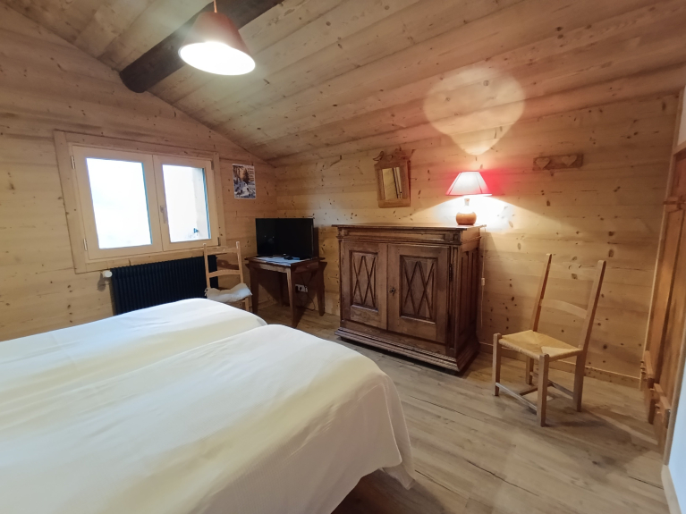 U zult dit chalet kiezen vanwege het comfort, het adembenemende uitzicht en de warme sfeer. Het chalet ligt in een bergweide, zeer rustig, zonder buren, en zeer gemakkelijk bereikbaar.