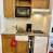 Keukenhoek: mini-oven, microgolfoven, vaatwasser, koelkast, 2 keramische kookplaten
