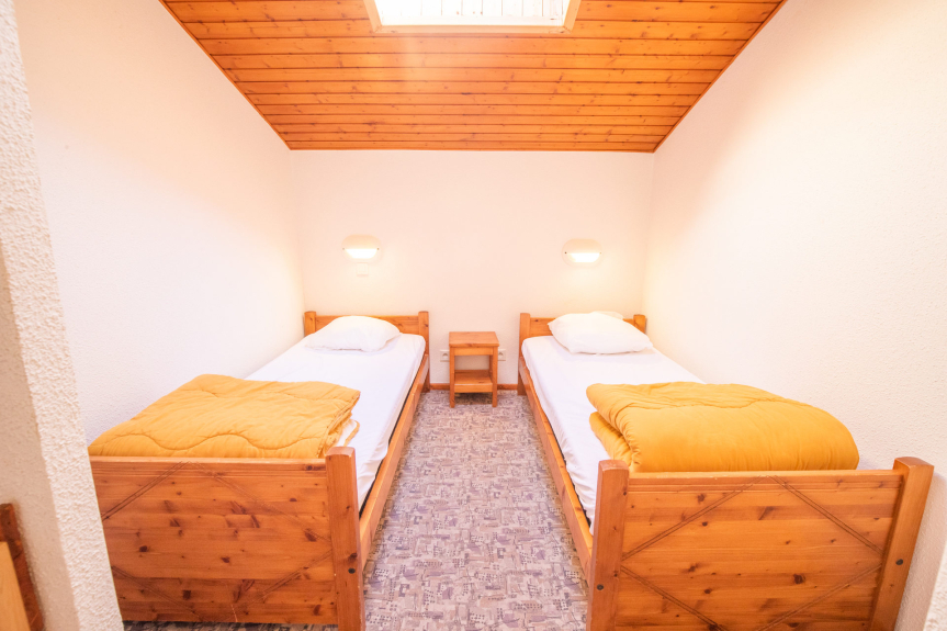 LES AROLLES - Een bosrijke residentie met een veertigtal appartementen op 2/3 niveaus, op 100m van de kabelbaan van Mélézet en op 250m van het dorpscentrum. Het centrum van het skioord is bereikbaar via het voetgangerspad dat langs de voet van de pistes loopt.