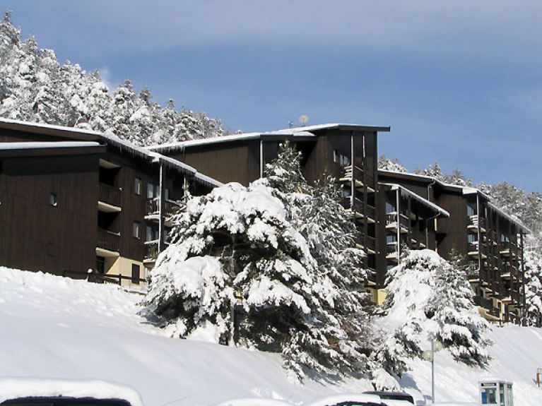 LE TETRAS - Een grote bosrijke residentie met een honderdtal appartementen op 5 niveaus verdeeld over 2 ingangen. Gelegen op ongeveer 200m van het dorpscentrum en 250m van het begin van de skipistes.