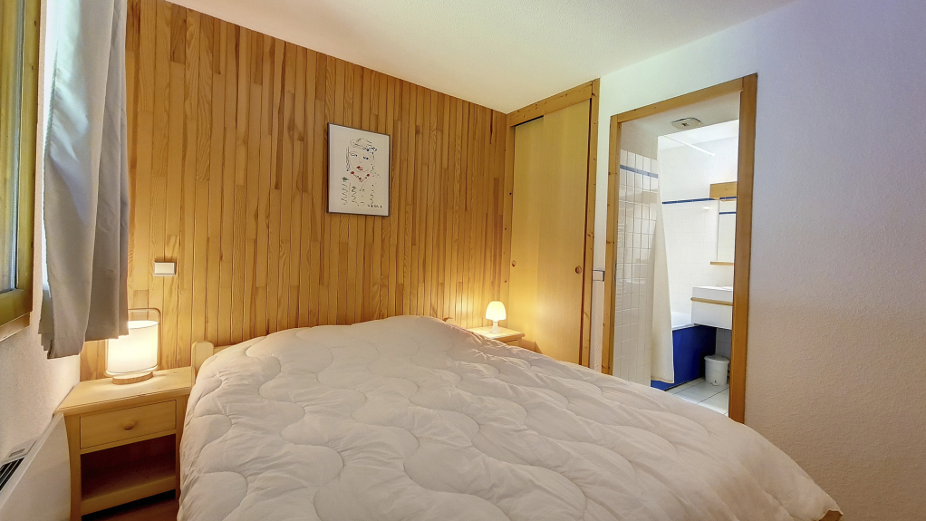 Slaapkamer 1 en suite: 1 tweepersoonsbed (160*200), badkamer met bad en wastafel.