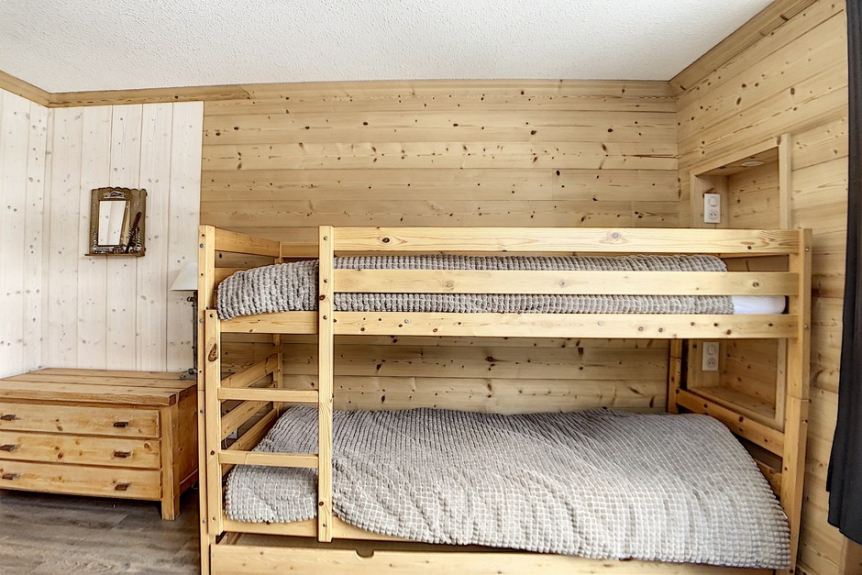 Slaapkamer: 2 stapelbedden en 1 tweepersoonsbed.