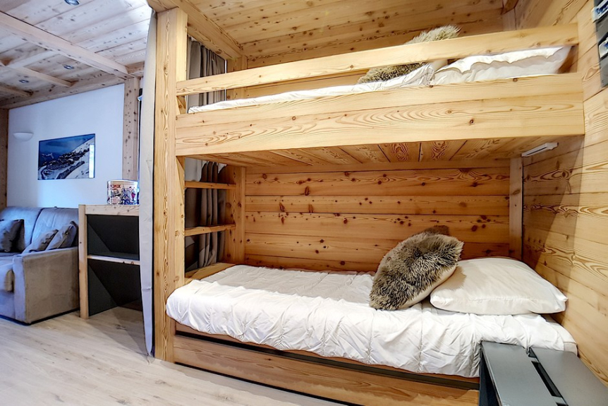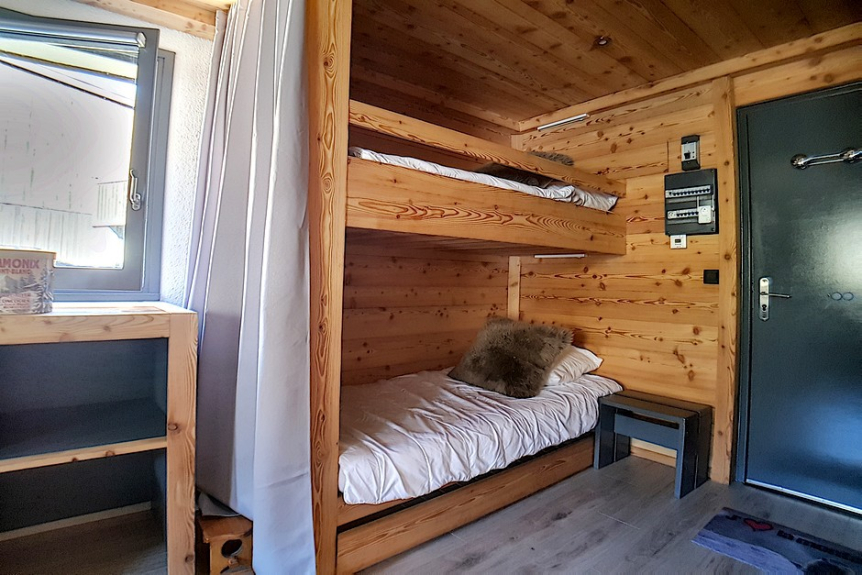 Berghoek (van de woonkamer gescheiden door een gordijn): 2 eenpersoons stapelbedden.