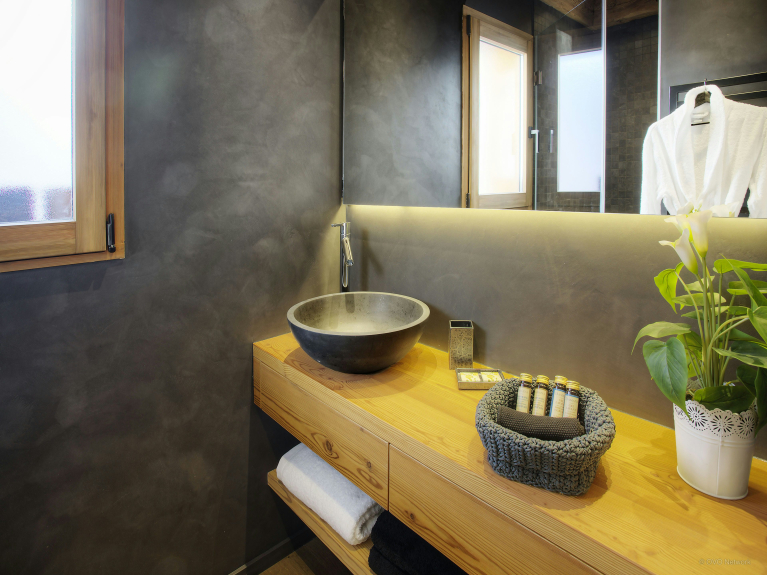 De ingang is op de begane grond, waar u uw buitensportuitrusting kunt opbergen in de skiruimte, voorzien van een laarzenwarmer, of in de grote bergkast in de hal. Er is ook een dubbele garage op deze verdieping, zodat uw voertuigen beschermd zijn tegen de sneeuw en klaar zijn om te vertrekken.