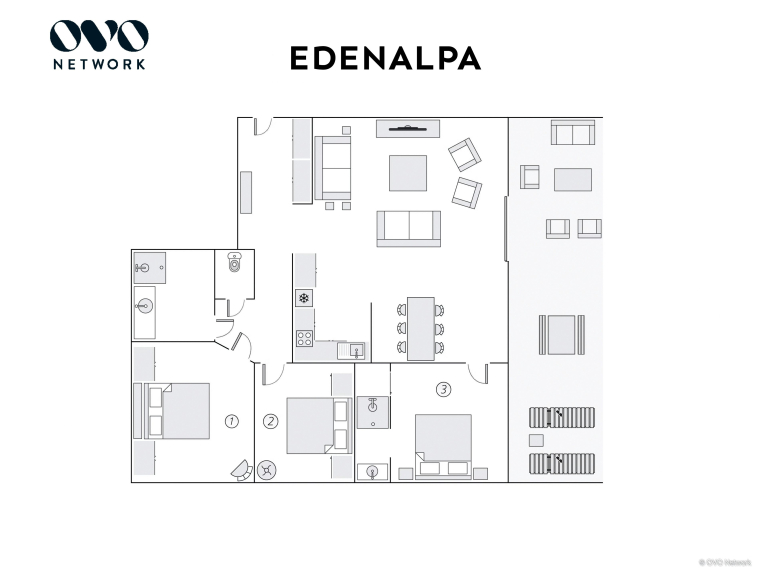 Het woongedeelte is ruim. Het omvat de keuken, de eethoek, de woonkamer, en geeft uit op het terras. De compacte maar goed uitgeruste keuken heeft alles wat je nodig hebt om uitstekende maaltijden voor zes personen te bereiden. Er is ook een barbecue op het terras als u liever van het uitzicht geniet terwijl u kookt, en na het diner kunt u ontspannen op de zachte sofa's terwijl u een film kijkt. Na het diner kunt u ontspannen op de zachte sofa's terwijl u een film kijkt. En wat dacht u van sterren kijken terwijl u nipt van een drankje op het terras? De Edenalpa flat heeft drie tweepersoonskamers. Eén heeft een en-suite badkamer met douche, terwijl de andere twee dezelfde badkamer met douche en een apart toilet delen. Neutrale tinten, imitatiebont en veel kussens geven Edenalpa een knusse en toch eigentijdse uitstraling, zodat u zich zowel in de zomer als in de winter helemaal thuis zult voelen.Er is een skiruimte in de kelder en parkeergelegenheid buiten het chalet.