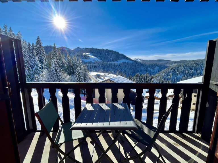 Charmante studio van 19m² op de derde verdieping met uitzicht op de bergen vanaf het balkon op het zuiden.
