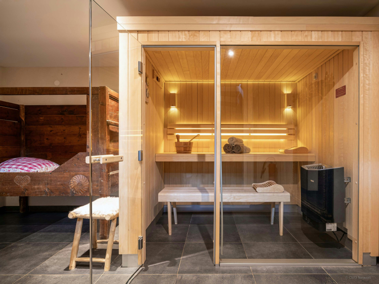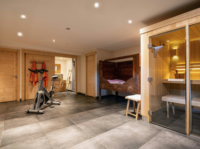 De accommodatie in Chalet Ibusta is verdeeld over drie verdiepingen. De garage bevindt zich op tuinniveau en is uitgerust met een schoenendroger en een grote ruimte om uw fietsen of ski's achter te laten aan het eind van uw dag in de bergen. Daarna kunt u ontspannen in de sauna of in de jacuzzi op het terras. Er is ook een grote fitnessruimte met een hometrainer, douche en wasgelegenheid.