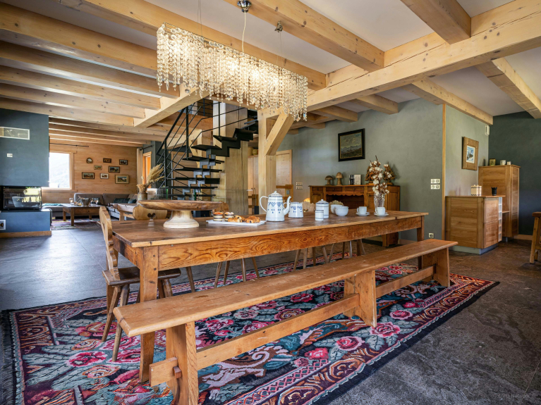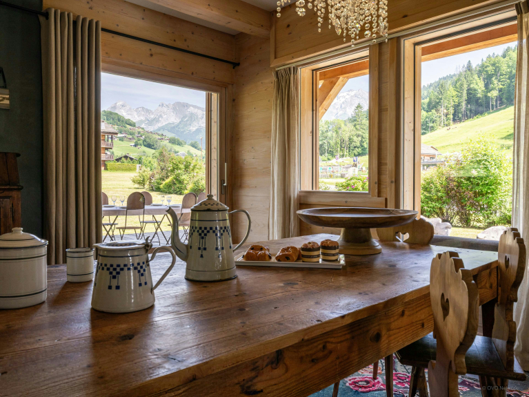 U zult zich direct thuis voelen in dit heerlijke chalet in het hart van Le Grand-Bornand. Het is gebouwd in 2014 en heeft een stijlvol en eigentijds interieur, doorspekt met antieke meubels en accessoires zoals tapijten en kunstwerken.