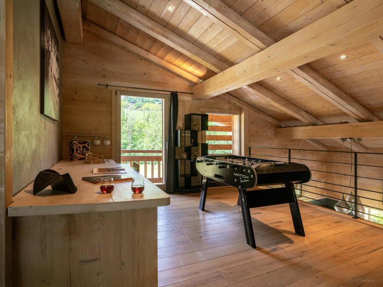 Het chalet heeft vier slaapkamers voor tien personen, een sauna, een speelkamer en een jacuzzi buiten. Alles wat u nodig heeft voor een perfecte vakantie in de bergen.
