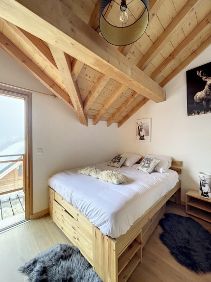 Echt Savoyard chalet met ski's aan, 92m² voor 10 personen op 3 verdiepingen met zicht op de omliggende bergen