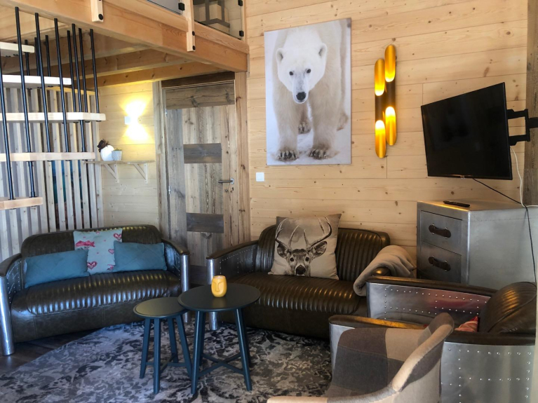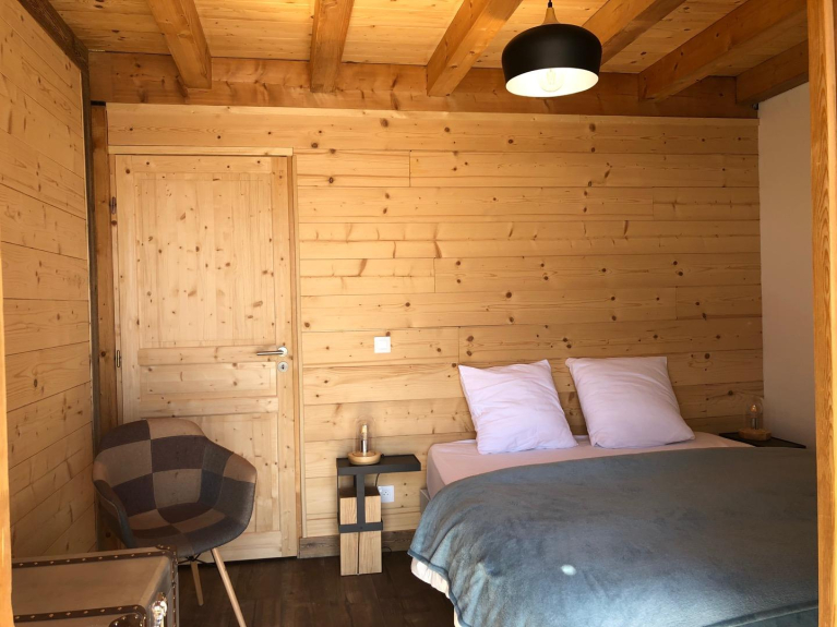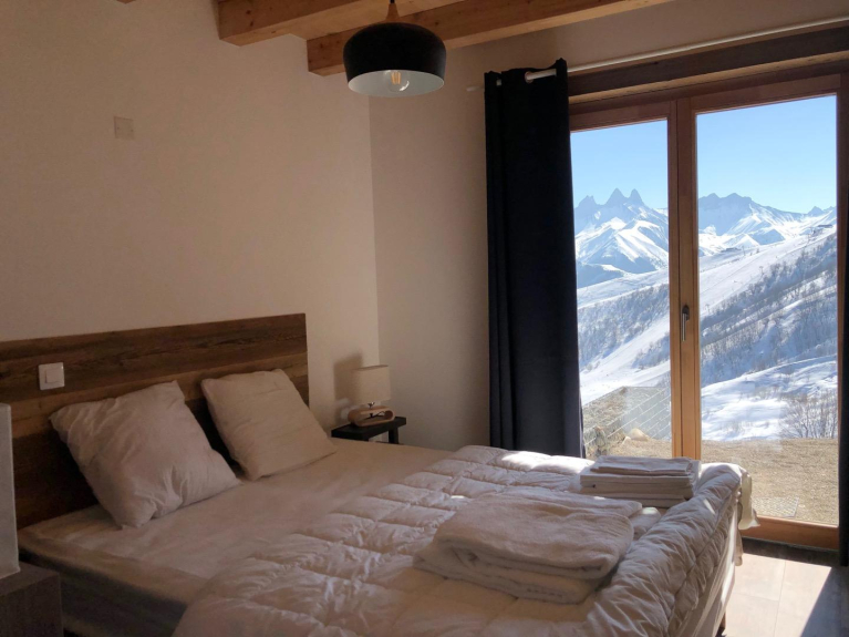 Savoyaards chalet op 2 niveaus met een adembenemend uitzicht op de Aiguilles d'Arves en de omliggende bergen.