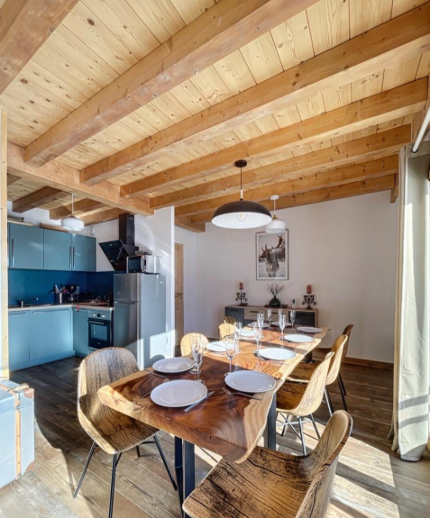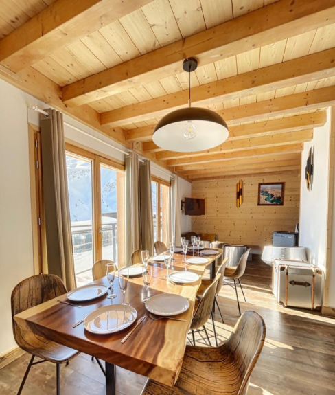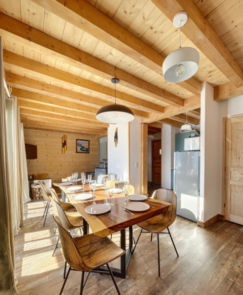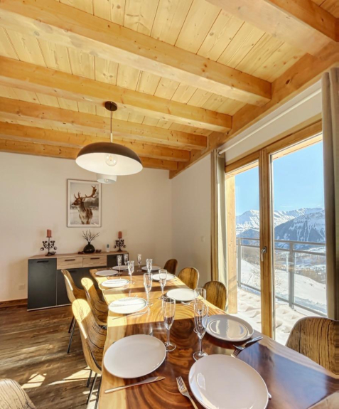 Savoyaards chalet op 3 niveaus met adembenemend uitzicht op de Aiguilles d'Arves en de omliggende bergen.