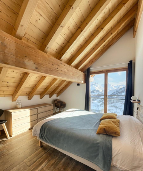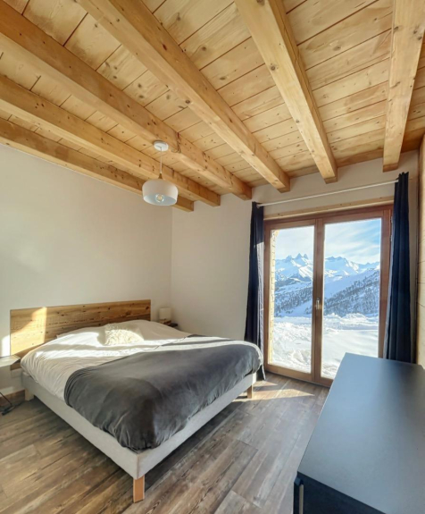 Alle kamers van het chalet Mauntenrojji hebben een uitzonderlijke ligging met een vrij uitzicht op de Aiguilles d'Arves en de omliggende bergen.