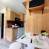 Keuken uitgerust met 2 inductiekookplaten, afwasmachine, koelkast, koffiezetapparaat, broodrooster en waterkoker.
