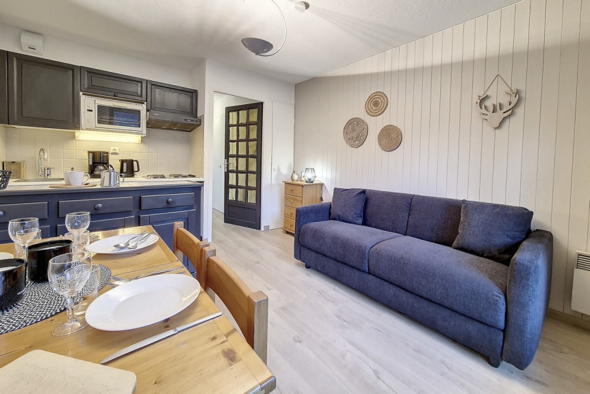 Het ligt dicht bij de Saint Martin 1 kabelbaan (directe verbinding met het skigebied van de 3 valleien), winkels (levensmiddelen, sportwinkel), en diensten (skischool en skiliften). Snowmaking.