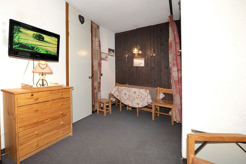 Woonkamer: 1 slaapbank voor 1 persoon, 1 uitklapbed voor 1 persoon; uitgerust met een televisie.