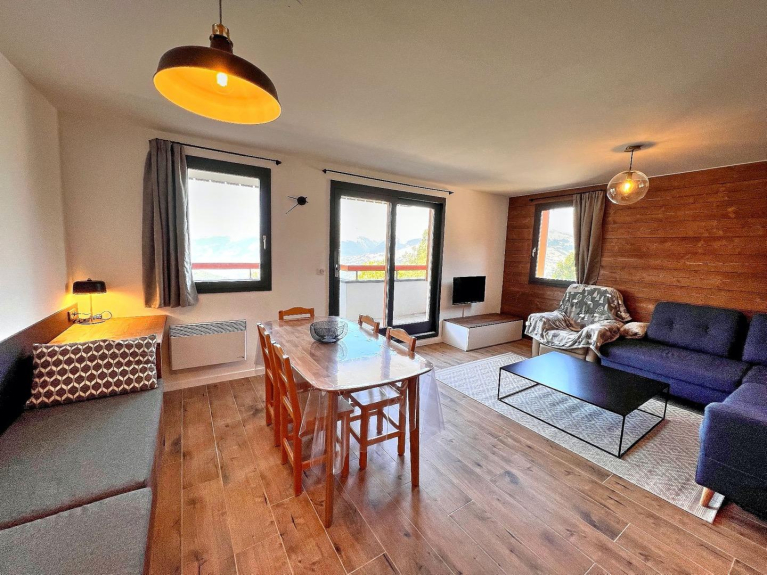 Dit onlangs gerenoveerde appartement, met zijn ruime en comfortabele woonkamer en open keuken, ligt op minder dan 50 meter van de eerste skiliften en het centrum van het dorp Vallandry.