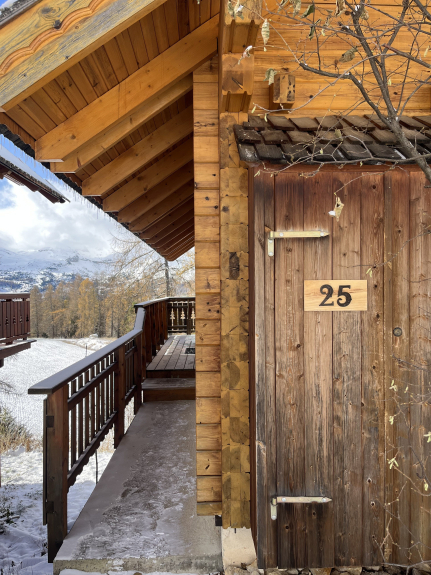 Massief houten chalet, zeer goed ingericht, in de frontlinie met een prachtig uitzicht op de bergen.