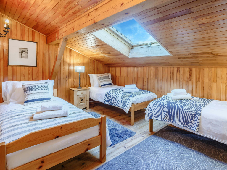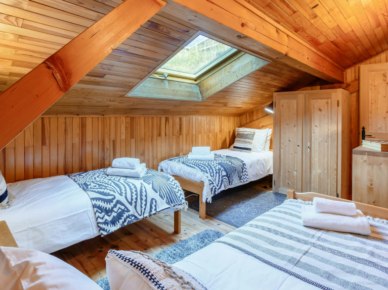 De kamers zijn verdeeld over de drie verdiepingen. Daarom is er privacy voor iedereen. De drie kamers op de bovenste verdieping, waarvan er twee ideaal zijn voor kinderen, vormen een mooie familieruimte.