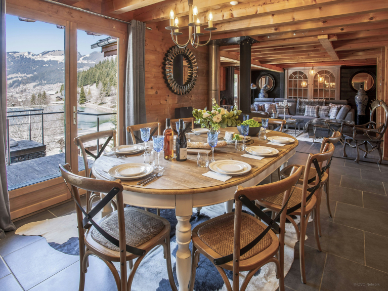 We houden van de elegante keuken, die alles heeft wat je nodig hebt om te koken en je familie te voeden. Het opent ook naar het balkon en met zijn deuren kunt u de frisse berglucht de inspiratie van uw chef laten voeden.