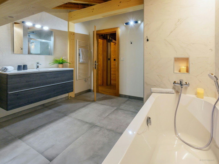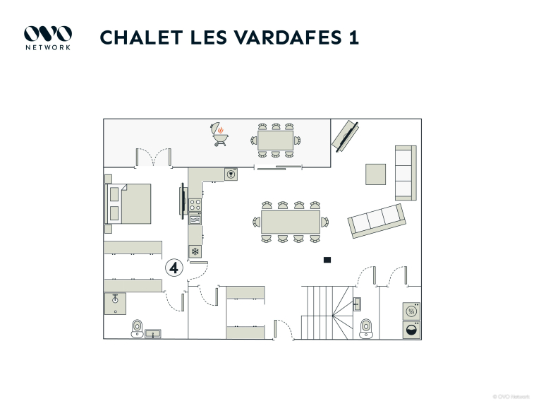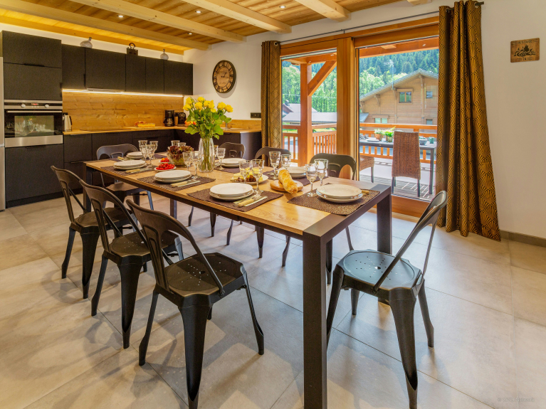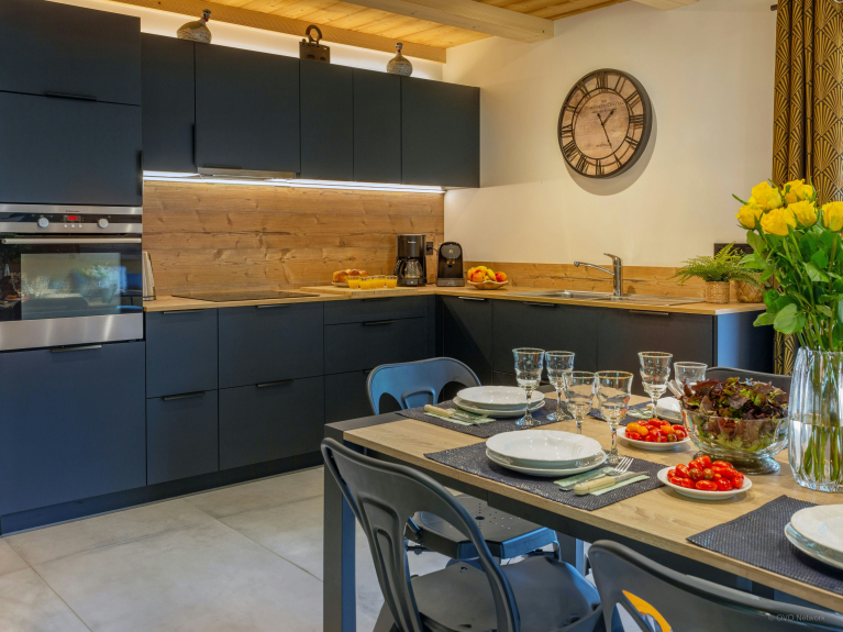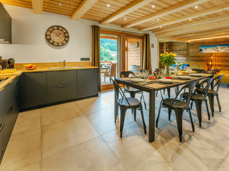 We houden vooral van de grote woonkamer, die uitkomt op een balkon met een prachtig uitzicht op de bergen. Drie van de vier slaapkamers hebben ook toegang tot een balkon, dus je kunt je dag beginnen met een hapje alpenlucht!