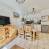 - Keuken die uitgeeft op de woonkamer: driepits inductiekookplaat, magnetron, kleine vriezer, oven, afzuigkap, koelkast, vaatwasser.