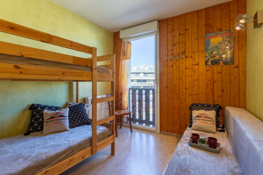 Een slaapkamer met 2x2 stapelbedden + 1 eenpersoonsbed