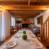 -een gezellige, gastvrije eetkamer met een grote boerentafel en open haard