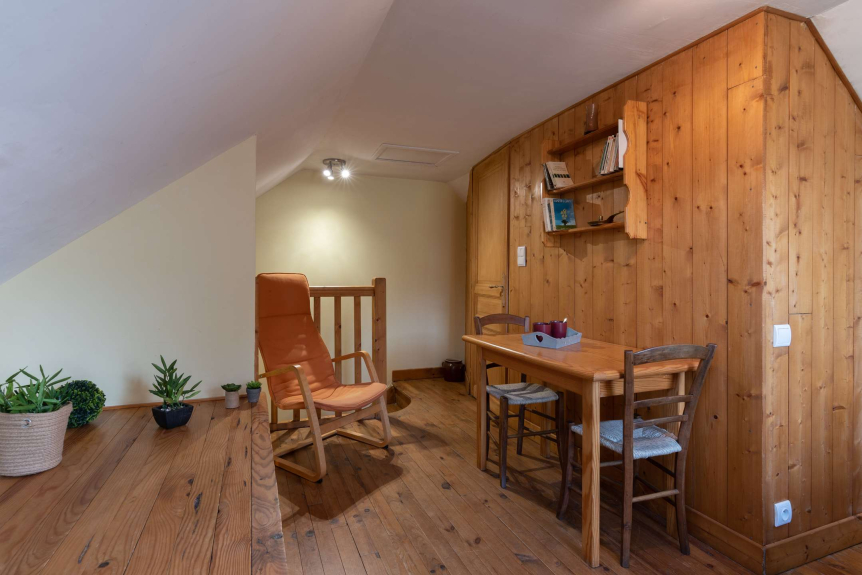 Het eerste deel, een duplex, heeft een ingerichte keuken op de begane grond en een grote woon/eetkamer met een grote open haard voor gezellige avonden!