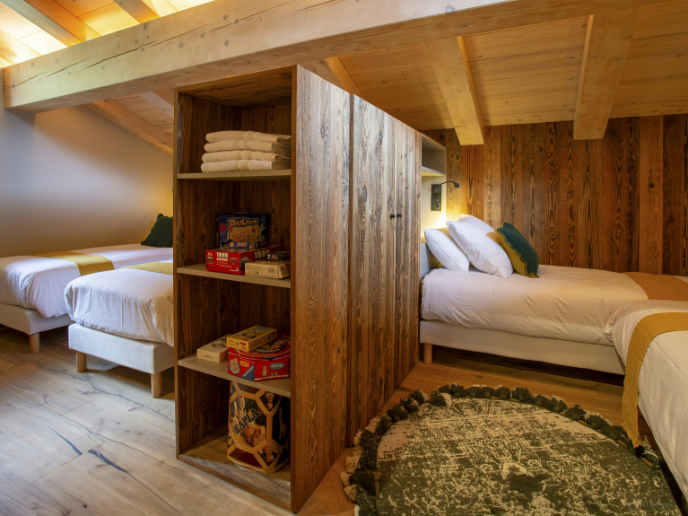 Met vier tweepersoonsslaapkamers verdeeld over 2 verdiepingen is dit chalet ideaal voor 2 gezinnen die samen willen verblijven, maar toch privéruimtes willen hebben. Alle kingsize bedden kunnen worden gescheiden in aparte bedden, afhankelijk van de specifieke behoeften van je groep.