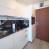 Ingerichte keuken met 2 inductiekookplaten, afzuigkap, koelkast, combi-oven, broodrooster, waterkoker en koffiezetapparaat.