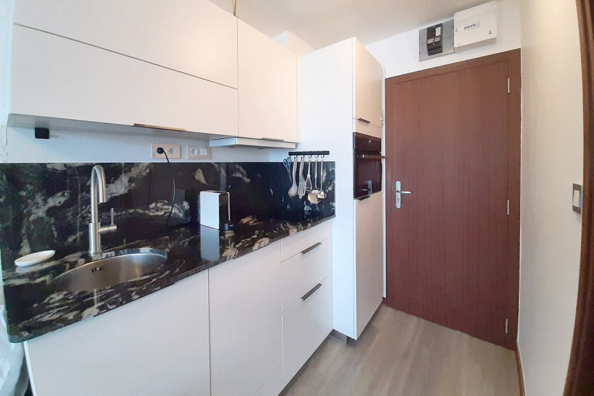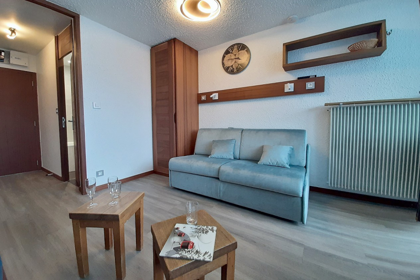 Deze volledig gerenoveerde studio van 21 m² is geschikt voor 3 personen en ligt op de 2e verdieping met lift en balkon op het zuiden/westen.
