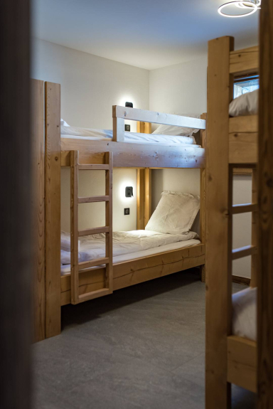 Een tweede slaapkamer heeft een bed van 160 cm en een TV. Een derde slaapkamer heeft een atypische slaapzaal: een stapelbed van 140*200 en 4 bedden van 90 x 200 verdeeld in 2 stapelbedden.