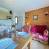 - Keuken open naar de woonkamer: inductiekookplaat, koelkast, magnetron, vaatwasser.