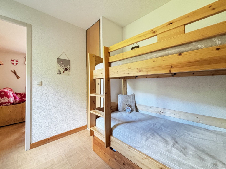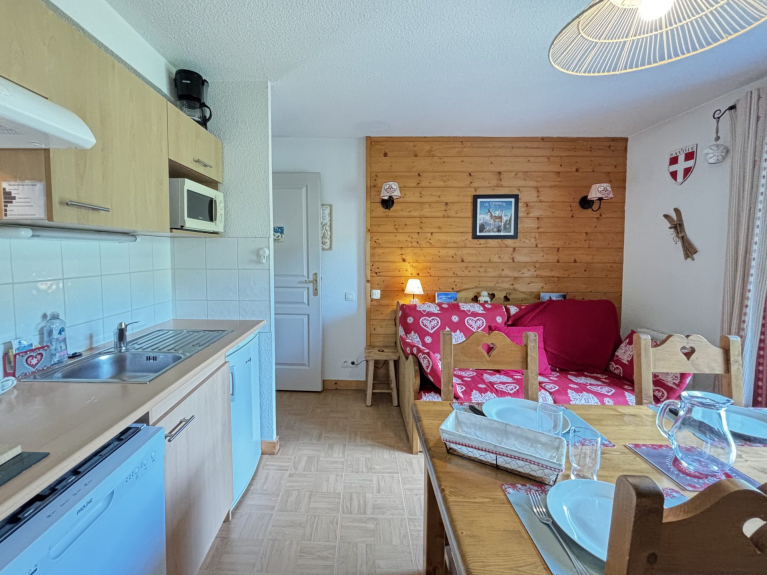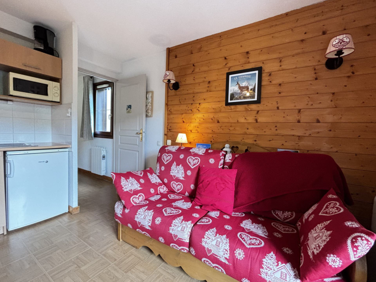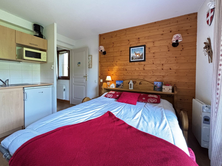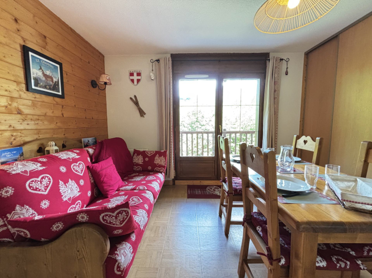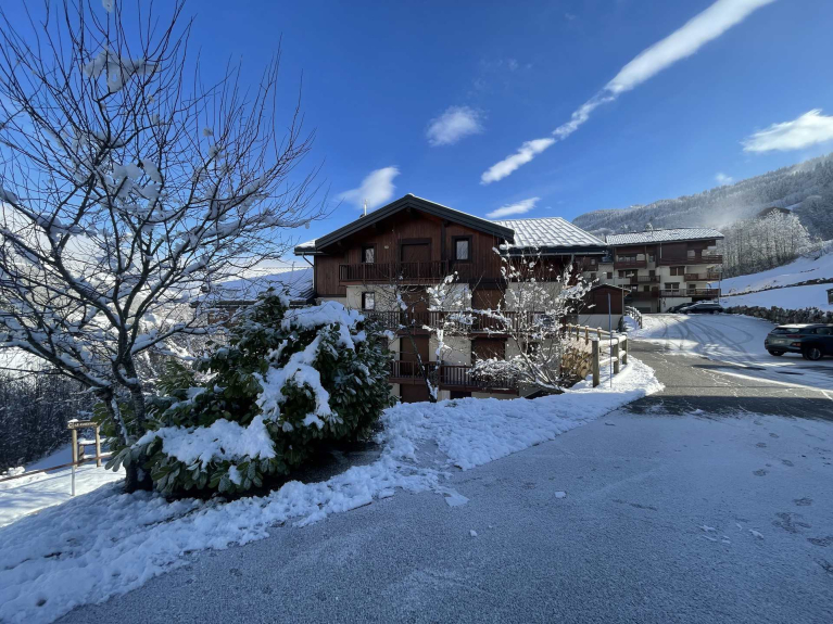 Résidence Les Chalets des Evettes met zwembad ligt aan de voet van de pistes van Espace Diamant en de skischool. Het dorpscentrum ligt op 3 km.