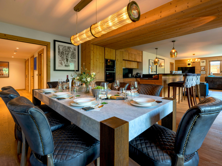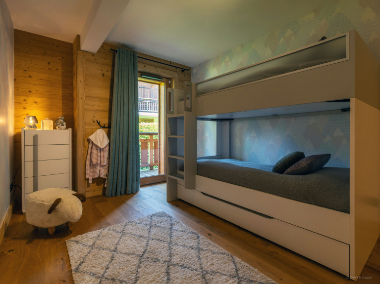 Sundance Kid Loft is een ruime flat voor negen personen op de tweede verdieping van een centraal gebouw in Megeve. Het heeft vier slaapkamers en vier doucheruimtes.