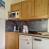 Open keuken: 2 kookplaten, magnetron, vaatwasser, waterkoker, koffiezetapparaat, broodrooster.