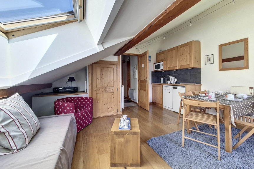 Mooie kleine flat van 25m2 voor vier personen op de bovenste verdieping van de residentie (geen lift).