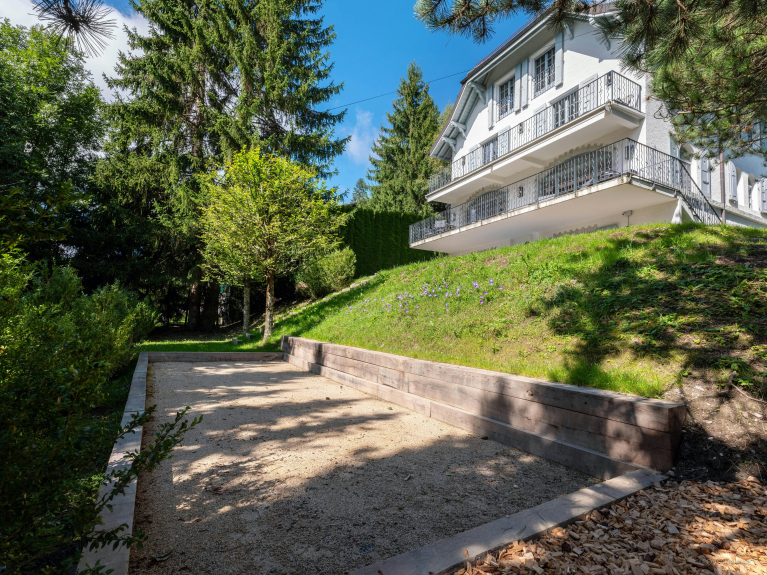 Buiten is er een groot terras met tafeltennis en pooltafels, een petanquebaan, een terrasvormige tuin, evenals een speeltuin op gras en een tennisbaan, die gedeeld wordt met het naburige gebouw.