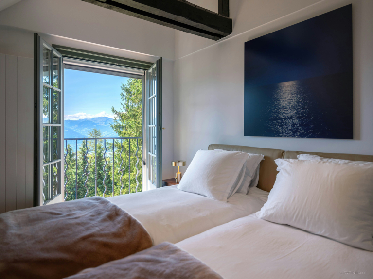 Manoir Montesano is een elegante villa van vier verdiepingen met vier slaapkamers en vier badkamers.