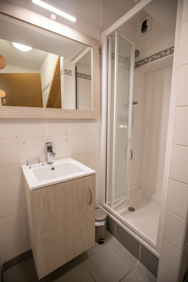 Badkamer: douche, wastafel, wasmachine - apart toilet