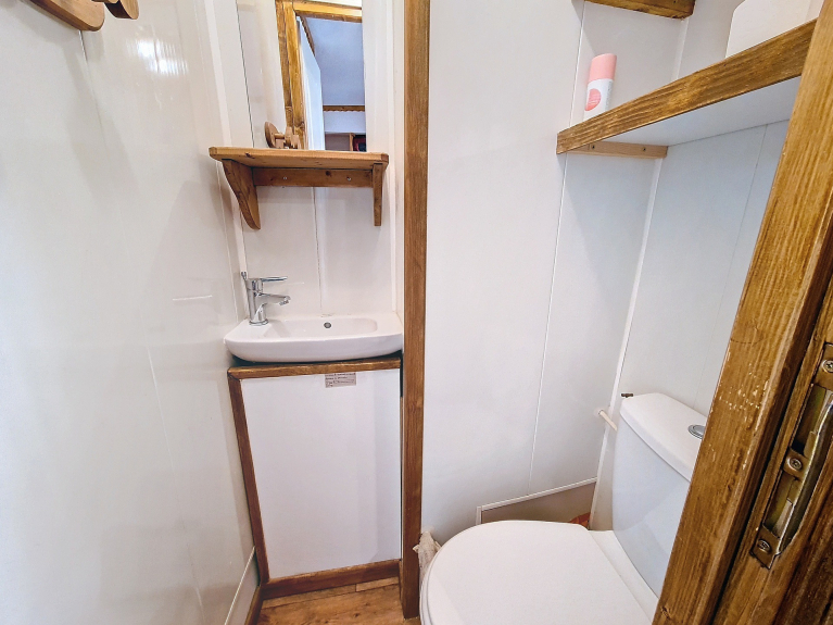 Keuken: 2 kookplaten, koelkast, mini-oven, magnetron, waterkoker, koffiezetapparaat en broodrooster.