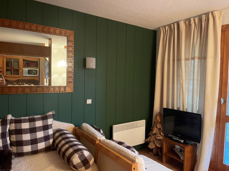 Dit 2-kamer appartement (28m²) is geschikt voor maximaal 4 tot 5 personen en bevindt zich op de begane grond van een residentie met lift. De woonkamer geeft uit op een halfoverdekt terras.
