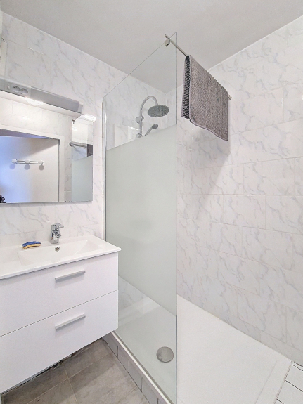 Slaapgedeelte (in de hal, door een deur gescheiden van de woonkamer): 1 eenpersoonsbed.