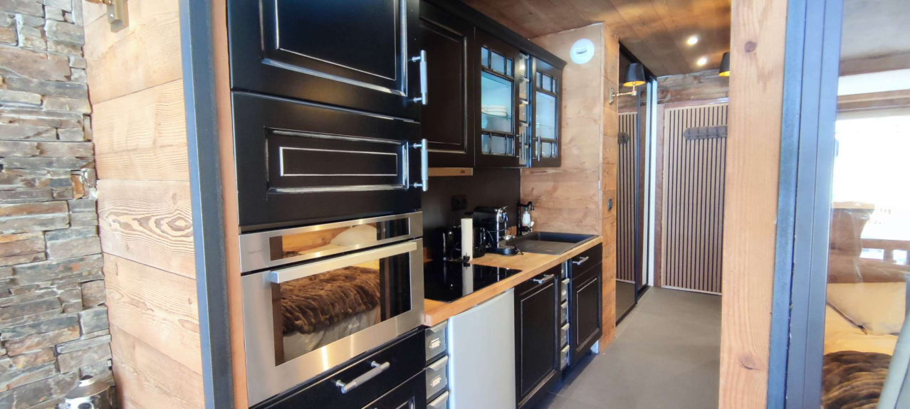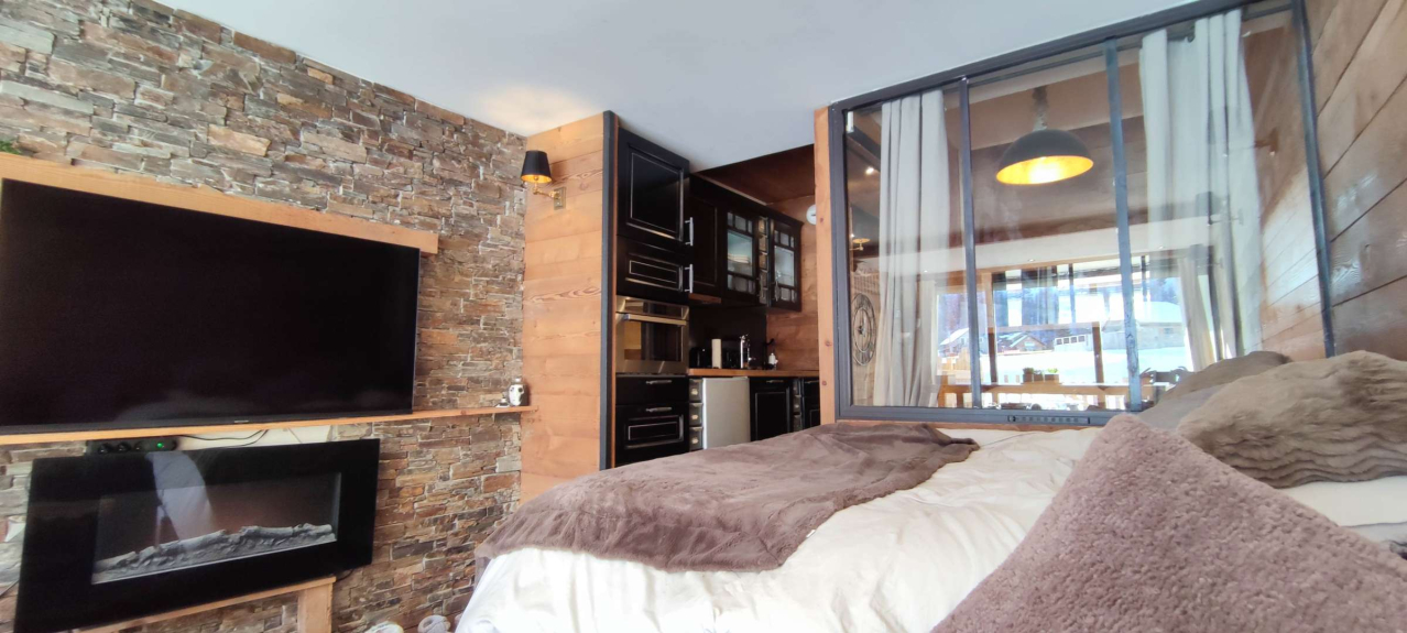 VRR6 Gelijkvloerse studio met mooi terras, gerenoveerd met een berggevoel. Directe toegang tot de pistes. Warme sfeer voor deze woning. 2 tweepersoonsbedden, 1 badkamer met WC, eethoek en volledig uitgeruste keuken. Gebouw gelegen in het complex "Front de Neige", aan de voet van de pistes, vlakbij de Galerie Marchande en de activiteiten van het resort. Internettoegang inbegrepen.