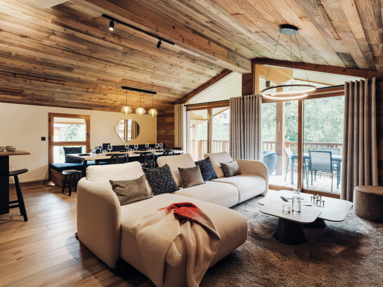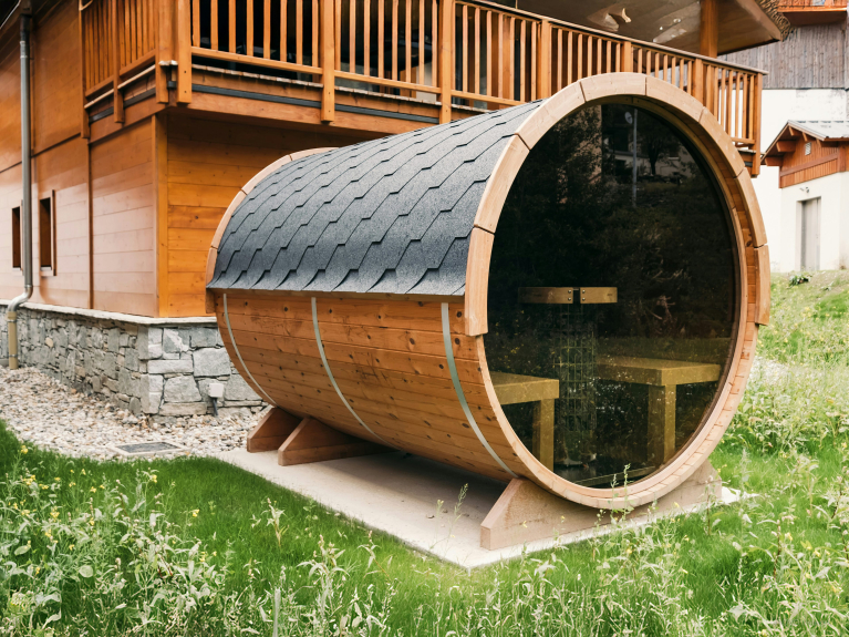 Tot slot, in de tuin, belooft de barrelsauna tijdloze momenten van welzijn, een echte uitnodiging om te ontspannen met uitzicht op het Vanoise massief.